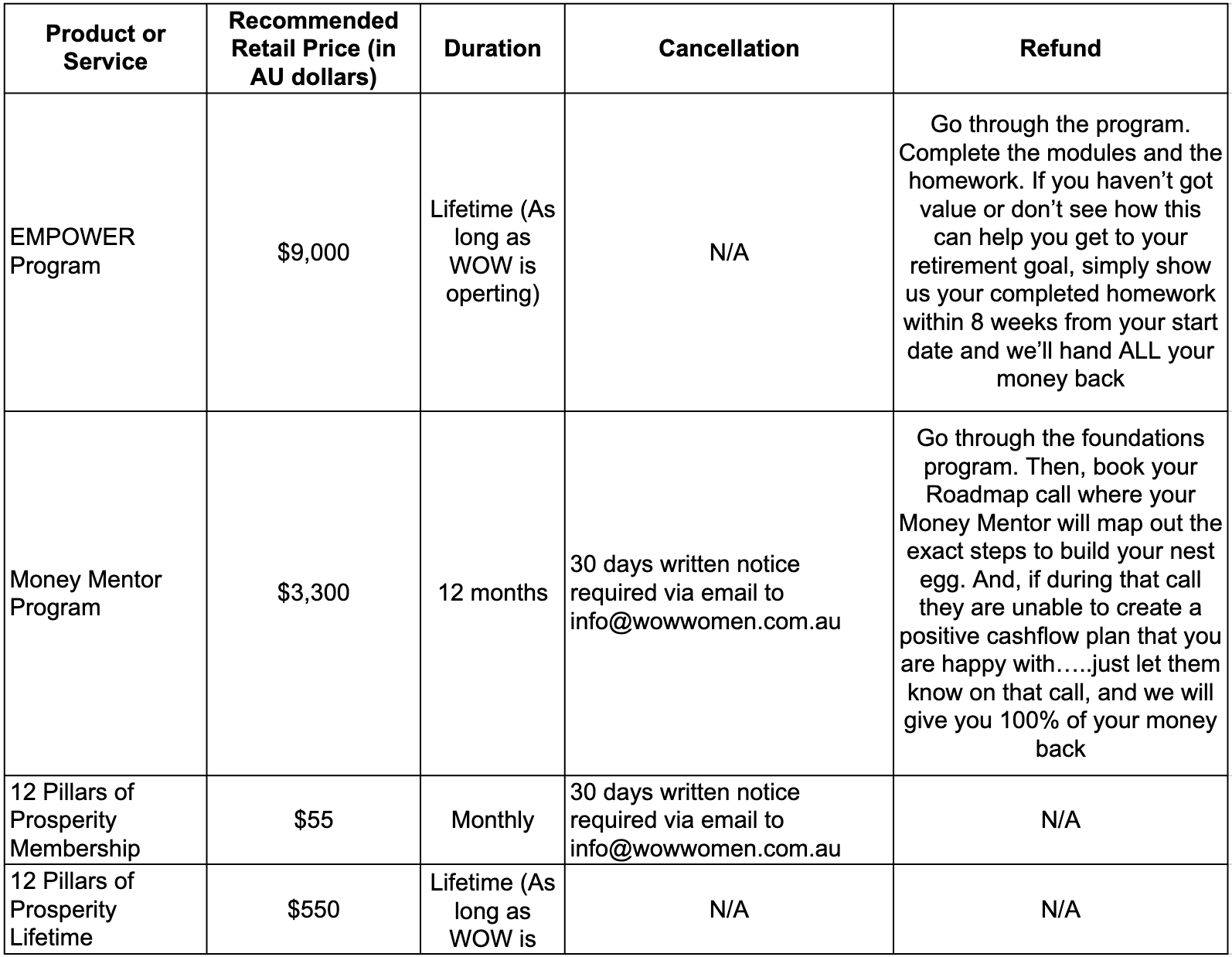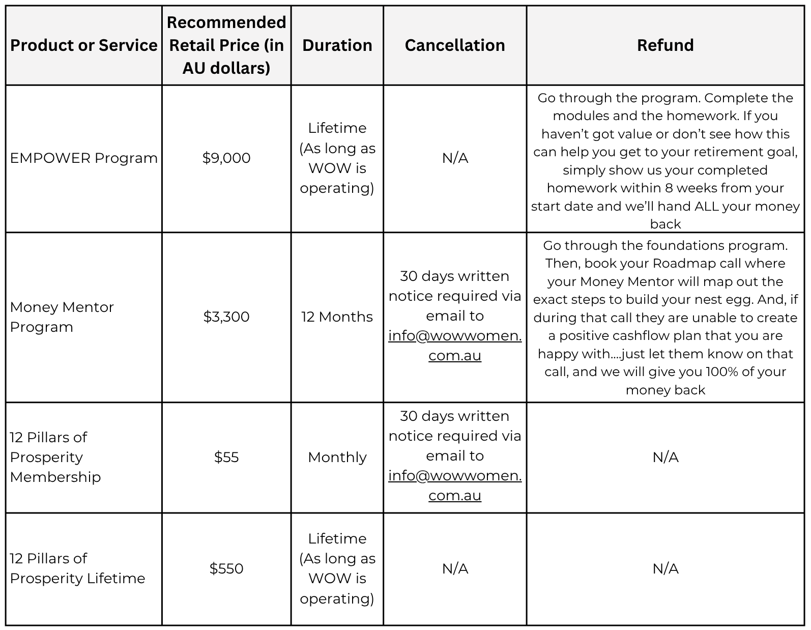 Website means the website operated by WOW at www.wowwomen.com.au ; and